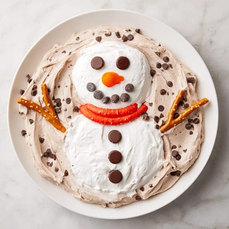 Save A whimsical, creamy dessert dip inspired by hot cocoa, shaped into a charming snowman—perfect for holiday gatherings and winter parties.