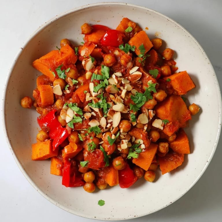 Save A fragrant, hearty North African stew featuring tender sweet potatoes, protein-rich chickpeas, and warming spices, simmered together for a deliciously comforting vegan main dish.