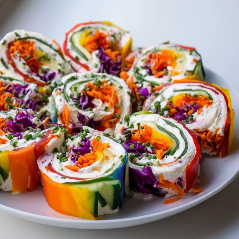 Save Colorful, festive pinwheels filled with crisp veggies and creamy cheese, perfect for holiday parties or healthy snacks.
